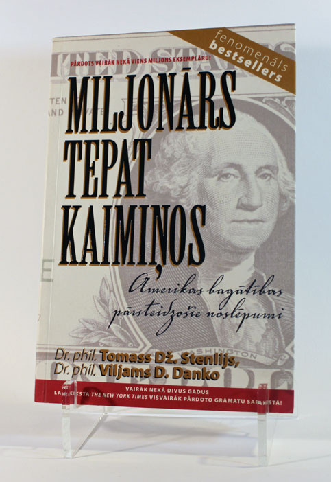 | Tomasa Dž. Stenlija un Viljama D. Danko grāmata “Miljonārs tepat kaimiņos” balstīta plašā pētījumā par amerikāņu turīgākajiem cilvēkiem un viņu dzīvesveidu. Autori rāda, ka turību nosaka uzkrāšana, disciplīna un plānošana, nevis tēriņi. Grāmata sniedz praktisku ceļvedi tiem, kas vēlas sasniegt finansiālu neatkarību. | |