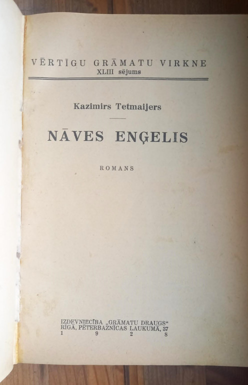 Przerwa-Tetmajer, Kazimierz. Rīga : Grāmatu draugs, 1928. gads 254 lpp. ; 20 cm. Vērtīgu grāmatu virkne ; XLIII sēj. Pāriesieta jaunos vākos. | |