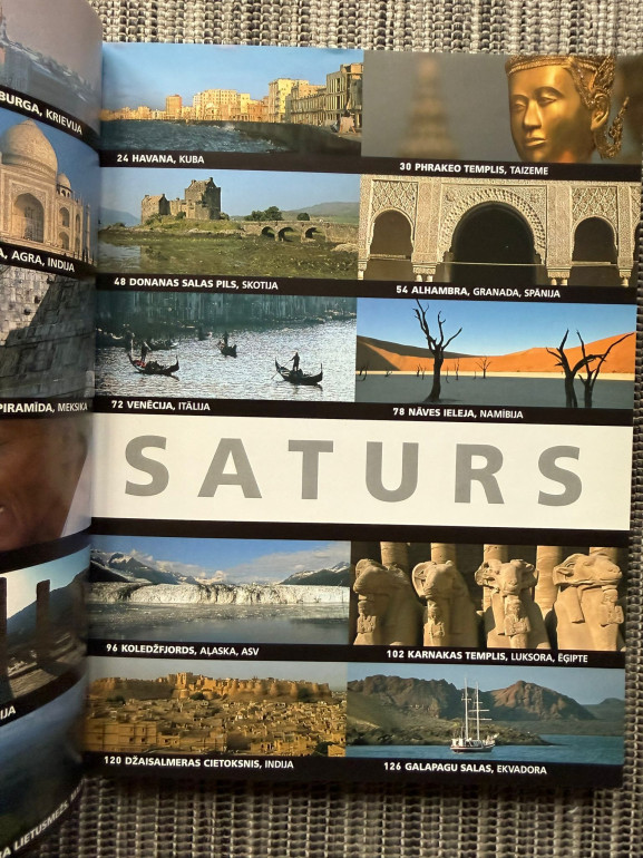 | Fotogrāfisks ceļojumu albums ar 40 galamērķiem: no Tādžmahalas un Lielā kanjona līdz Nāves ielejai Namībijā un Donanas salas pilij Skotijā. Iedvesmojoši teksti un autora fotogrāfijas par pilsētām, dabas brīnumiem un kultūras pieminekļiem | |