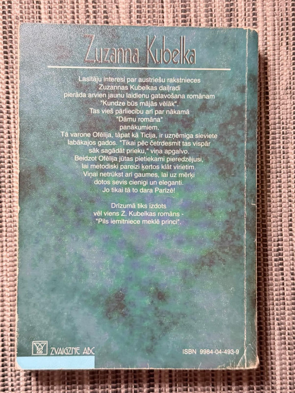 | “Ofēlija mācās peldēt” ir Zuzannas Kubelkas ironisks romāns par pašapzinīgu sievieti ap četrdesmit, kura Parīzē ar eleganci un humoru “mācās” mīlestību, baudu un sevi. Provokatīvs, asprātīgs stāsts par attiecību spēles noteikumiem un sievietes brīvību. | |