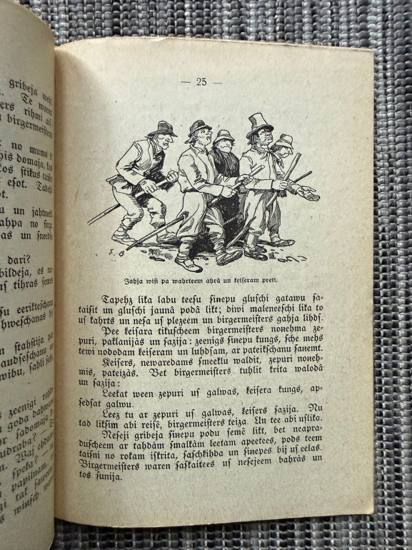 | Izdevums “Par malēniešiem” (Jēkabs Zvaigznīte) sākotnēji publicēts 1860. gadā Jelgavā, bet 1923. gada izdevums ir atkārtots pārizdevums. Darbs balstīts uz seno švābu un šildbirgeru nostāstiem, veidots kā groteska, kas ironiski atklāj muļķību un vientiesību. Tajā malēnieši veic absurdas darbības – rok izkritušās runas, nes gaismu ar maisiem, sēj sāli, velk govi uz mūra, pat nodedzina pilsētu kaķa d | |