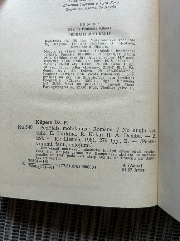 Vēsturisks romāns par Franču un indiāņu kara laiku 1757. gadā. Stāsts par Vanagacu, mohikāņiem Unkasu un Čingačguku, un viņu centieniem glābt angļu komandiera meitas. Traģisks stāsts par cilšu iznīcību un pēdējo mohikāni. | |