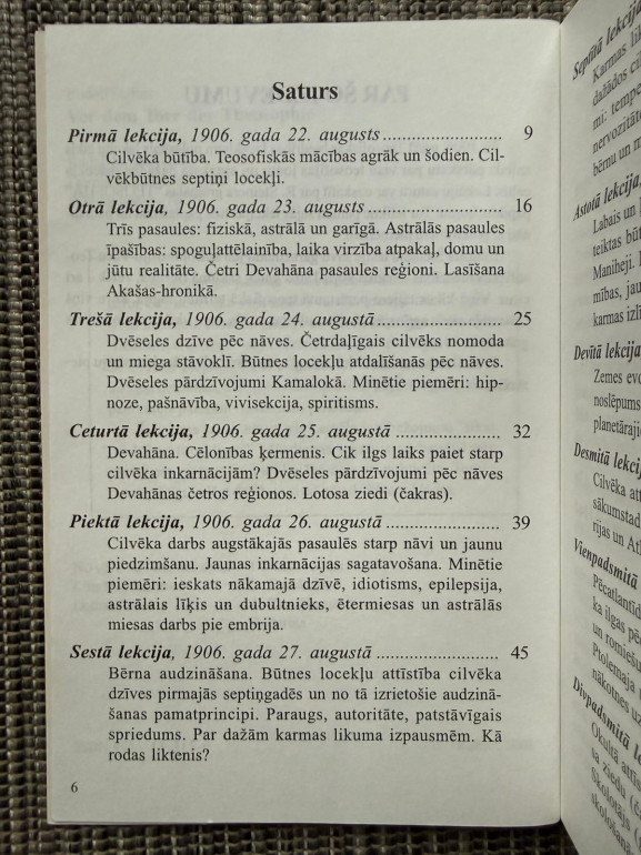 | “Pie Teosofijas vārtiem” ir Rūdolfa Šteinera ievads teosofijas pasaulē. Autors atklāj cilvēka būtības uzbūvi, karmas un reinkarnācijas likumus, sniedzot pamatus garīgajai izziņai un ceļu uz dziļāku apziņas attīstību. | |