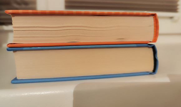 | Divu grāmatu komplekts. Ārēji var manīt tipogrāfijas lapu "vilnīšus", lasīšanai nekādi tas netraucē. | |