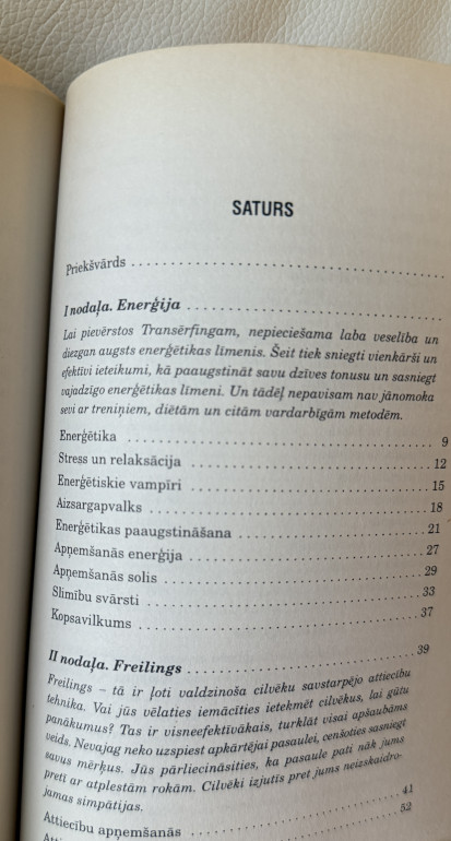 | Transērfings – tā ir varena tehnika, kas paver iespēju darīt no ikdienas viedokļa neiespējamo – vadīt likteni pēc saviem ieskatiem. Transērfinga pamatā ir variantu modelis – principiāli jauni uzskati par mūsu pasaules uzbūvi. Cilvēks nezina, ka var kaut ko nevis panākt, bet gluži vienkārši saņemt to, ko vēlas. Jūs pārņems neaprakstāma sajūta, kad ievērosit sevī spējas, par kurām neko pat nenojautā | |