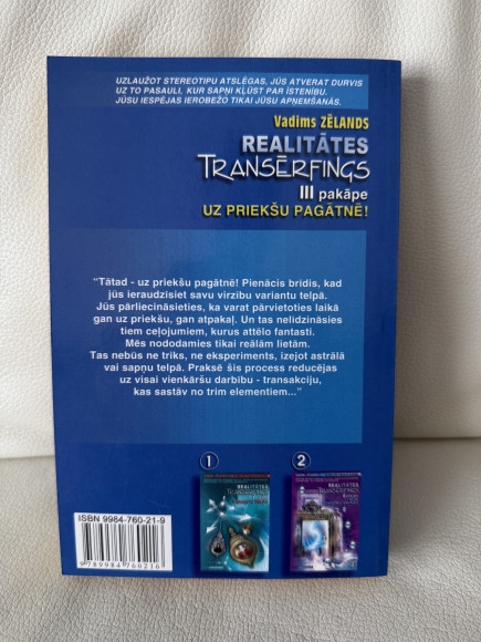 | Transērfings – tā ir varena tehnika, kas paver iespēju darīt no ikdienas viedokļa neiespējamo – vadīt likteni pēc saviem ieskatiem. Transērfinga pamatā ir variantu modelis – principiāli jauni uzskati par mūsu pasaules uzbūvi. Cilvēks nezina, ka var kaut ko nevis panākt, bet gluži vienkārši saņemt to, ko vēlas. Jūs pārņems neaprakstāma sajūta, kad ievērosit sevī spējas, par kurām neko pat nenojautā | |