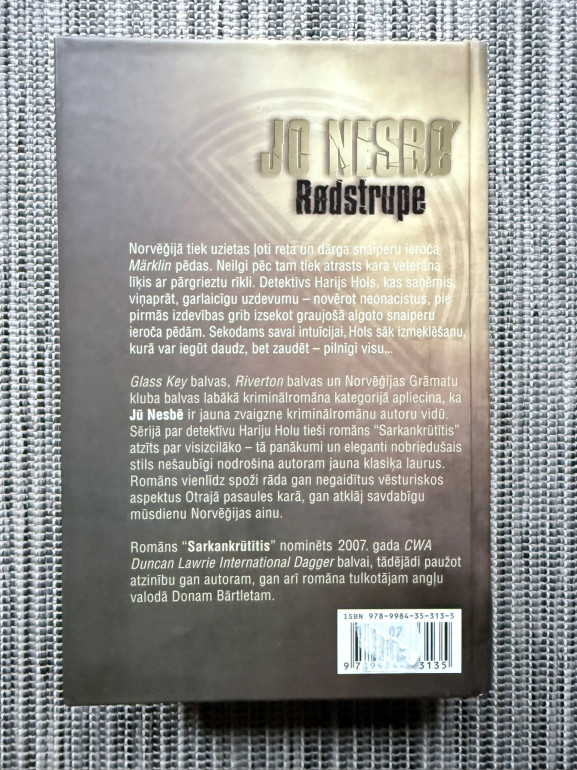 | Cietie vāki. “Sarkankrūtītis” (Jū Nesbē) ir detektīvs romāns, kas ir daļa no Harija Hūla sērijas. Stāsts risinās ap slepkavību, kuras izmeklēšanā Hūls saskaras ar noslēpumiem no pagātnes, atklājot vardarbību, atriebību un ģimenes traumas. Grāmata ir tumša, spriedzes pilna, ar negaidītiem pavērsieniem un psiholoģisku dziļumu, pētot cilvēka dabas tumšākās puses. | |