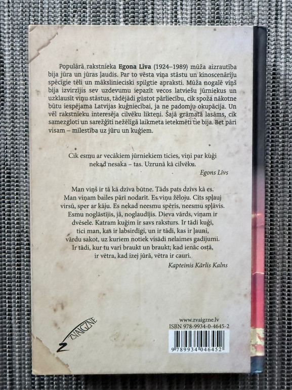 | Dokumentāli bagāts un dzīvs stāstu krājums par jūrnieku pieredzi, atmiņām un dzīves gudrību. Autors caur sarunām ar pieredzējušiem jūras vīriem atklāj jūras skarbo romantiku, darba ikdienu un cilvēka attiecības ar stihiju. | |