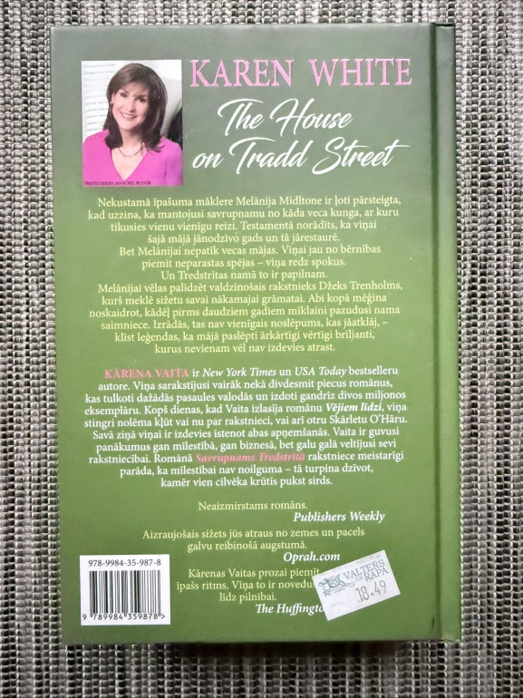 | Grāmata “Savrupnams Tredstrītā” ir pirmais romāns Tredstrītas sērijā: nekustamā īpašuma mākleri Melāniju Midltoni pārsteidz mantojums — vecs Čārlstonas nams ar spokiem un neatklātiem noslēpumiem. Kopā ar rakstnieku Džeku Trenholmu viņa meklē pazudušās saimnieces pēdas un leģendārus briljantus. Mistērija, romantika un Dienvidu atmosfēra. | |