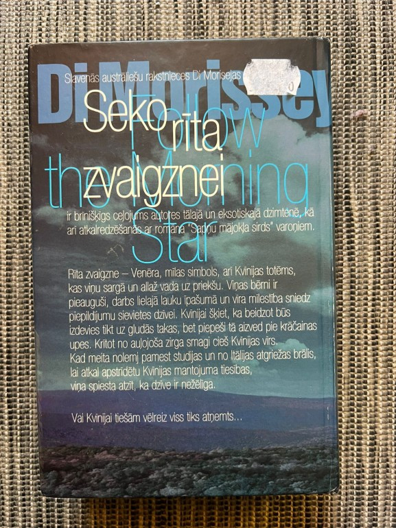 | Grāmata “Seko rīta zvaigznei” (Di Moriseja) ir plašs Austrālijas sāgas turpinājums par Kvīniju Hanlonu: kad viņas vīrs TR pēc jāšanas nelaimes zaudē atmiņu un atriebīgs brālis atgriežas, lai atvilktu mantojumu, Kvīnija cīnās par ģimeni, zemi un mīlestību. | |