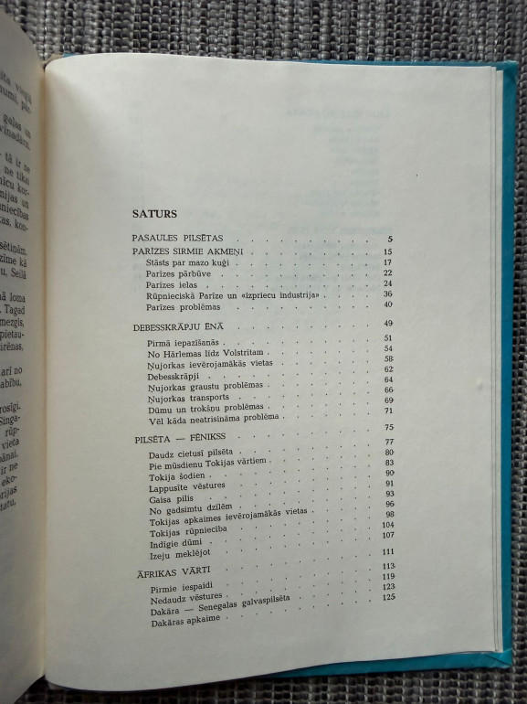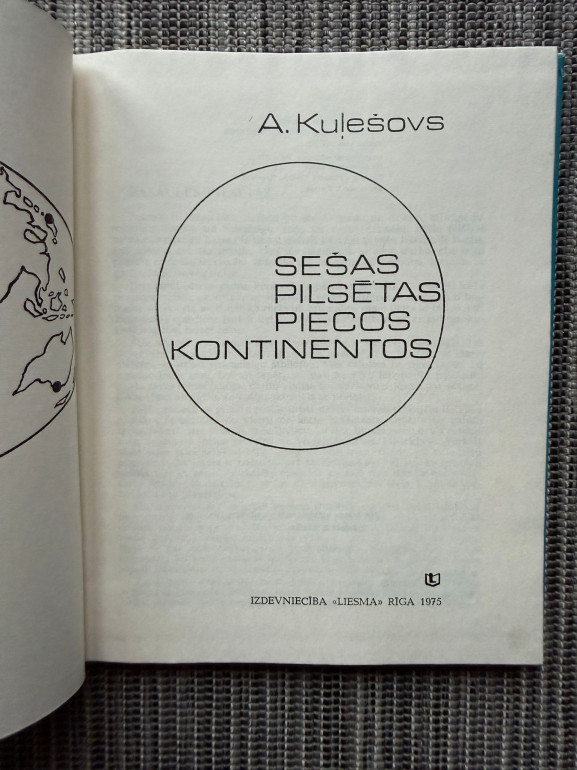 | "Sešas pilsētas piecos kontinentos" ir A. Kuļešova ceļojumu aprakstu grāmata, kurā autors dalās iespaidos par sešām pilsētām dažādos pasaules kontinentos. Darbs tulkots no krievu valodas un izdots 1975. gadā izdevniecībā Liesma. Grāmatā iekļautas fotogrāfijas un ilustrācijas, un tās tematika saistīta ar ģeogrāfiju, kultūru un ceļojumu pieredzi. | |