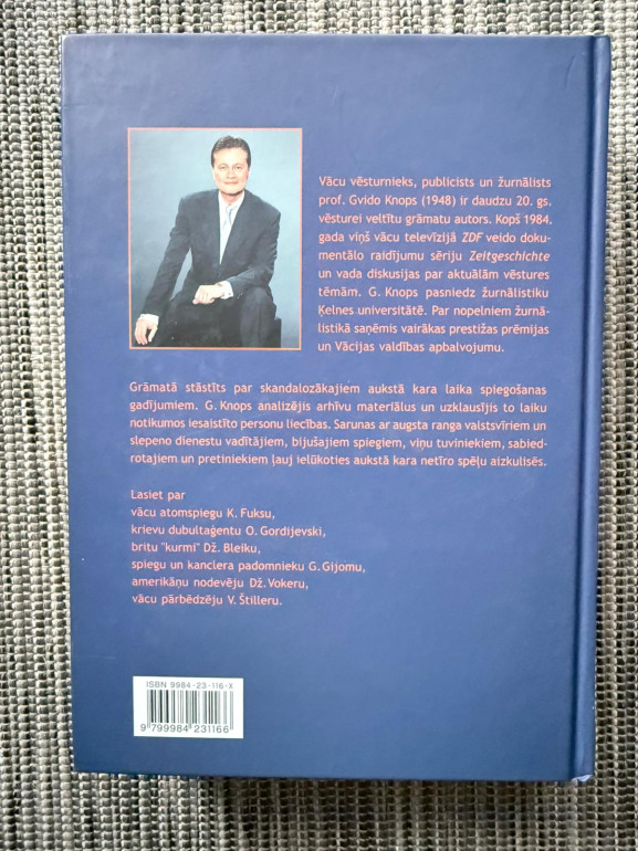 | Grāmata “Spiegi. Aukstā kara netīrās spēles” ir Gvido Knopa dokumentāls stāstu krājums par skandalozākajiem Aukstā kara spiegošanas gadījumiem—balstīts arhīvu materiālos un intervijās ar slepeno dienestu vadītājiem, spiegiem un viņu līdzgaitniekiem, atklājot slepenās cīņas mehāniku, motīvus un nodevības cenu. | |
