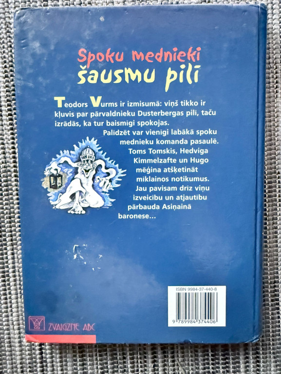 | Grāmata “Spoku mednieki šausmu pilī” ir jautrs, mazliet biedējošs piedzīvojumu detektīvs: Toms, spoku medniece Hedviga Kimmelzafte un draudzīgais spoks Hugo izmeklē baiso pili, kur valda sīkkožļu spoki un “pelējusā” baronese. Stāsts par drosmi un komandas spēku bērniem ~8+ | |