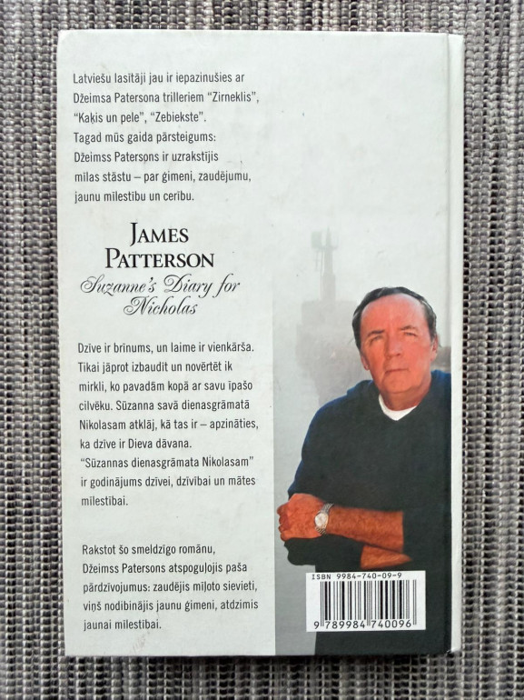 | Grāmata “Sūzannas dienasgrāmata Nikolasam” ir Džeimsa Patersona romantisks, epistolārs romāns par Ņujorkas grāmatu redaktori Keitiju Vilkinsoni, kuras attiecības ar dzejnieku Metu Hārisu pēkšņi pajūk. Mets atstāj dienasgrāmatu, ko ārste Sūzanna rakstījusi savam dēlam Nikolasam; caur ierakstiem Keitija pakāpeniski atklāj Meta pagātni, mīlestību, ģimenes laimi un traģēdiju, kas lika viņam pazust. | |