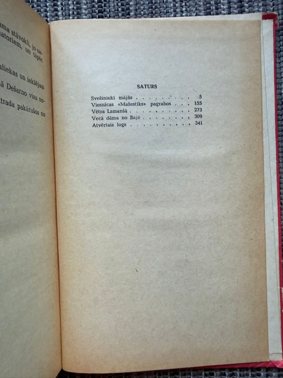 | Grāmata "Svešinieki mājās" (Žoržs Simenons, izdevniecība Liesma, 1970) ir psiholoģisks romāns, kurā autors pēta cilvēku attiecības, noslēpumus un spriedzi ģimenes vidē. Simenonam raksturīgajā stilā atklājas emocionāli sarežģītas situācijas, kur svešinieks var izrādīties tuvāks par savējiem. | |