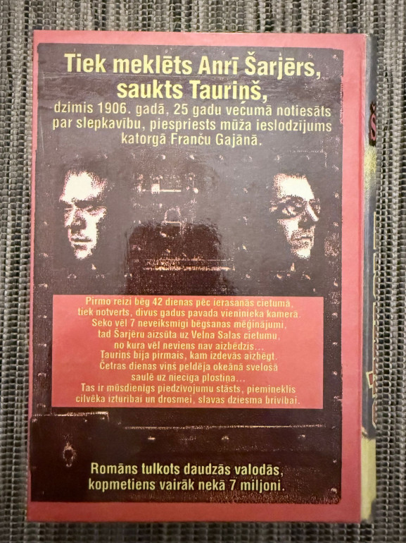 | Grāmata “Tauriņš” ir Anrī Šarjēra (Henri Charrière) autobiogrāfiskais romāns (1969) par viņa notiesāšanu 1931. gadā un vairākiem bēgšanas mēģinājumiem no Franču Gviānas katorgas; stāsts aptver ~14 gadus un kulminē ar bēgšanu no Velnassalas | |