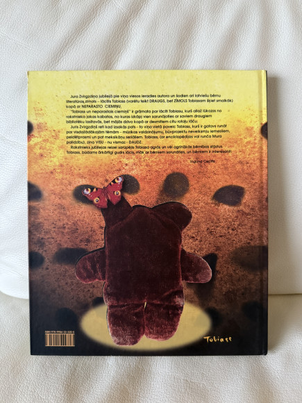 | "Tobiass un neparastais ciemiņš" ir grāmata par lācīti Tobiasu, kurš allaž lūkojas no rakstnieka jakas kabatas, no kuras izkāpj vien sarunājoties ar saviem draugiem bibliotēku lasītavās, bet mājās dzīvo kopā ar desmitiem citu rotaļu lāču. Juris Zvirgzdiņš reti kad izsakās pats - to viņa vietā paveic Tobiass, kurš ir gatavs runāt par visdažādākajām tēmām. | |