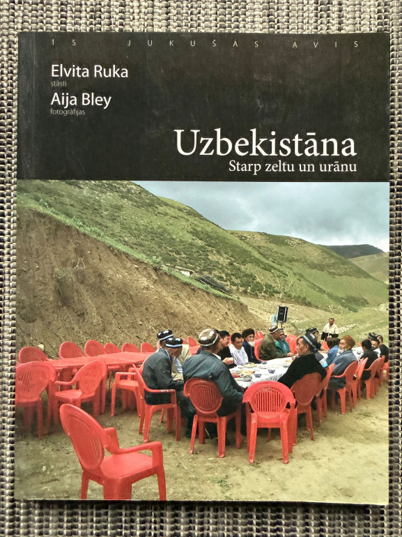 | Grāmata “Uzbekistāna. Starp zeltu un urānu” ir Elvitas Rukas un Aijas Bley piedzīvojumu stāsts par valsti starp Zīda ceļa pilsētu mirdzumu un tuksneša zelta/urāna realitāti. Neizskaistināti vērojumi, bīstami brīži pie milzu karjera, cilvēku ikdiena un kopības sajūta — skarbi un skaisti; pirmais ciklā “15 jukušas avis” | |
