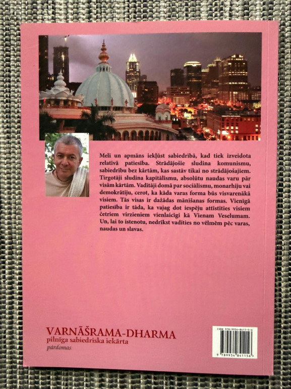 | Vēdiskās sabiedrības modelis varnāšrama-dharma: četru kārtu (brāhmani, kšatriji, vaišjas, šūdras) un dzīves posmu līdzsvars. Hakimovs aicina uz sistēmu, kur attīstās visi virzieni, nepakļaujoties varai un naudai; koncentrēts pārdomu ceļvedis ar ilustrācijām | |