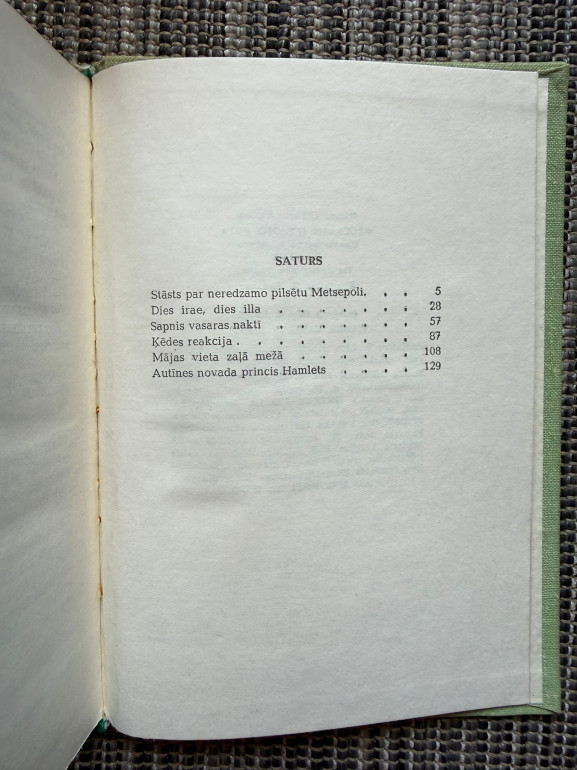 | Piecu stāstu krājums, kurā savijas fantāzija, ironija un stilizācija. Autors rotaļīgi atklāj paradoksālas situācijas, sabiedrības tēlus un kultūras motīvus, veidojot spilgtu postmodernisma prozu. | |