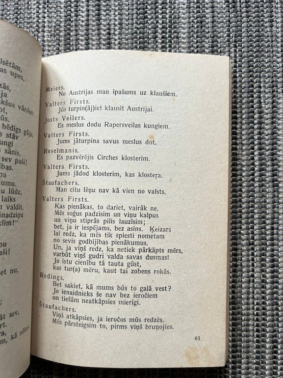 | Grāmata “Vilhelms Tells” (Frīdrihs Šillers) ir klasiskā luga, kas stāsta par Šveices tautas cīņu pret Hābsburgu varu 14. gadsimtā. Centrā ir strēlnieks Vilhelms Tells, kurš kļūst par brīvības simbolu, sacelšanās iedvesmotāju un drosmes paraugu. Darbs uzsver taisnīgumu, neatkarību un cilvēka cieņu. | |