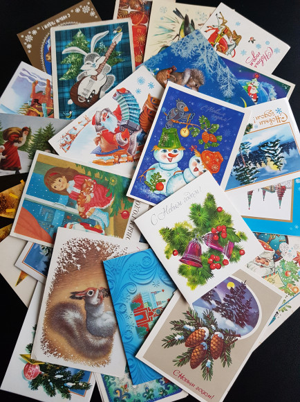 | 50 gab.pastkartes. Visas jaungada svētku tēma. Visas nav lietotas. Latviešu un krievu valodā | |