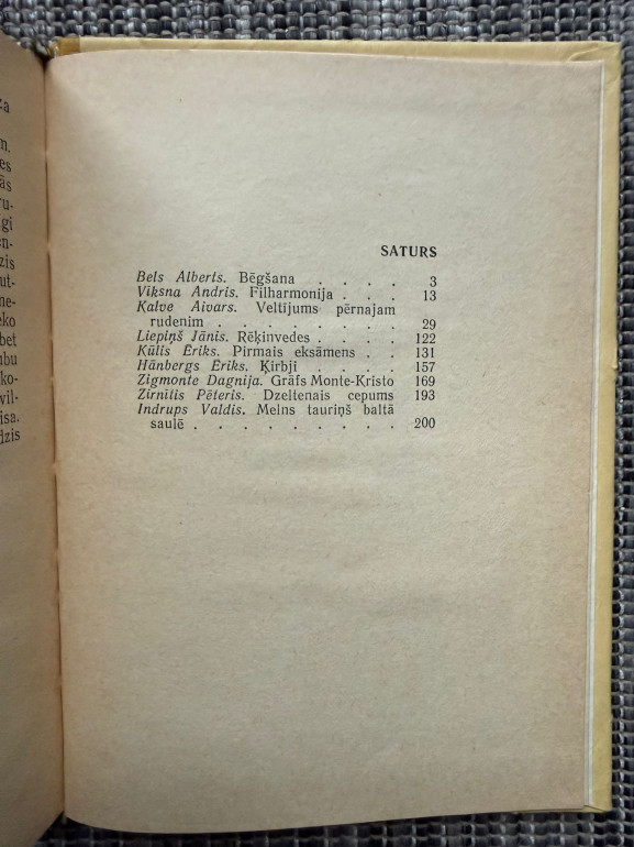 | Stāstu izlase, kurā iekļauts arī Alberta Bela darbs “Bēgšana”. Krājumā atspoguļoti cilvēku likteņi, ikdienas situācijas un morāles izvēles, raksturīga psiholoģiska niansētība un laikmeta noskaņa. | |