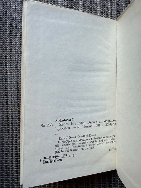 | Grāmata "Zenta Mauriņa. Dzīves un daiļrades lappuses" ir Ingrīdas Sokolovas monogrāfisks pētījums, kas veltīts Zentas Mauriņas – izcilas latviešu rakstnieces, domātājas un kultūras vēstnieces – dzīves un radošā mantojuma izpētei. | |