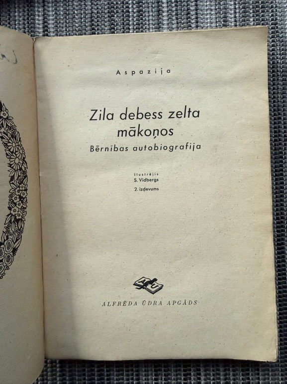 | Grāmata “Zila debess zelta mākoņos” (Aspazija) ir bērnības atmiņu diloģija, kas uzskatāma par latviešu bērnu literatūras klasiku. Pirmajā daļā “Zila debess” autore sirsnīgi apraksta agrīno bērnību Zaļenieku pagasta “Daukšu” mājās – pirmos piedzīvojumus, dabas skaistumu un iztēles pasauli. Otrajā daļā “Zelta mākoņi” atainotas skolas gaitas un ceļš uz zināšanām, kas nebūt nav viegls. Darbs ir emocio | |