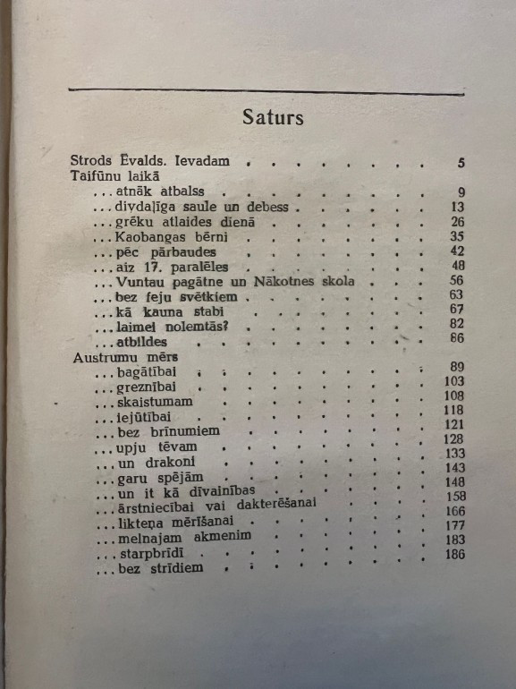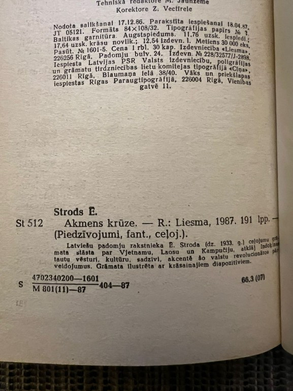 Ceļojumu apraksts par Vjetnamu, Laosu un Kampučiju. Strods atklāj Indoķīnas tautu kultūru, vēsturi un sadzīvi, akcentējot revolucionāros pārveidojumus šajās valstīs. Grāmata ilustrēta ar krāsainiem diapozitīviem. | |