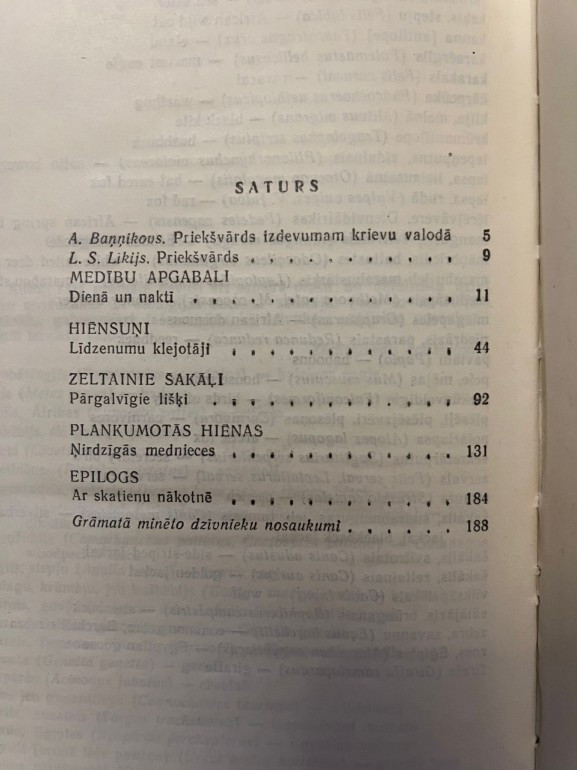 Hiēnsuņi, hiēnas un šakaļi, ko parasts nicinoši dēvēt par maitēdājiem, asinskāriem plēsoņām, šai grāmatā parādīti no gluži negaidītas puses. Tie attēloti ka gudri dzīvnieki, gadīgi vecāki, uzticīgi draugi. Sniegta unikāla informācija par šo dzīvnieku izturēšanos savvaļā un nozīmi dabā. | |
