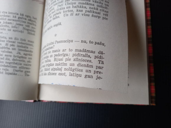 Izgriezta pirmā lapa. 17-18 lpp nogriezts stūrītis. Izņemot šos trūkumus, grāmatai minimālas lietošanas pazīmes. | |