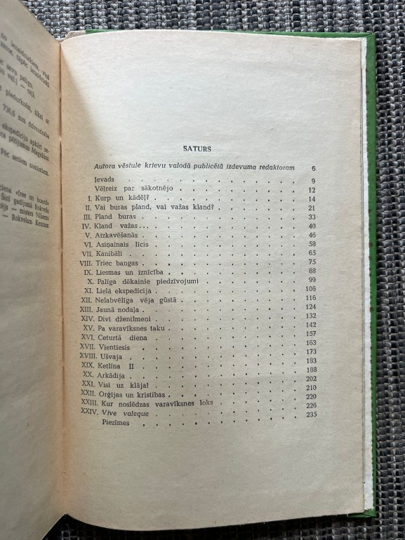 Autora dienasgrāmatas stāsts par ceļojumu pa Latīņamerikas dienvidu krastiem 20. gadsimta 20. gados. Aprakstīta daba, cilvēki un jūras braucēju sapnis – Hornas zemesrags. Poētisks un vizuāli bagāts ceļojuma apraksts. | |