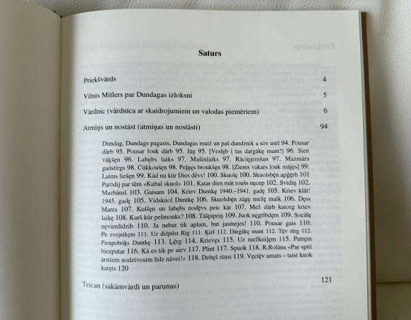 20. gadsimta dundadznieku sarunvaloda, ieskats V. Mitlera spilgti attēlotājās muižas laika un starpkaru laika neatkarīgās Latvijas zemnieku dzīves norisēs un autora piedzīvotajā. | |