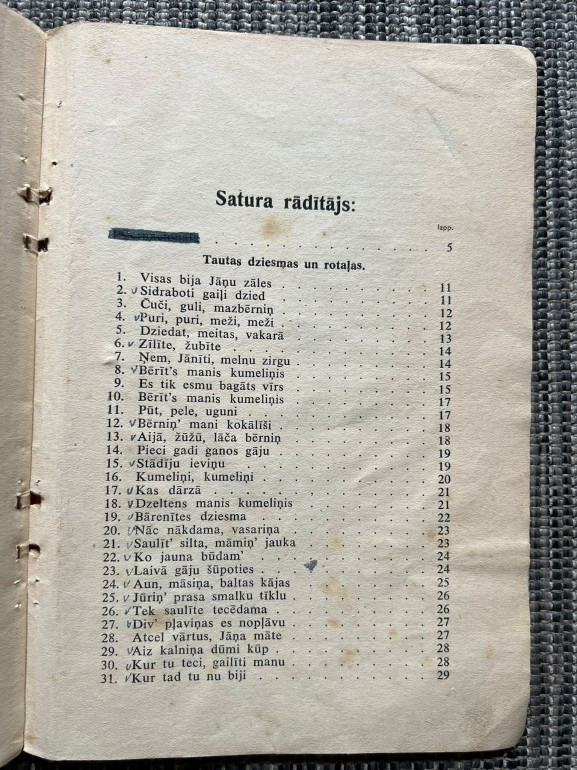 | Grāmata “Dziesmu vācelīte” (Jēkabs Mediņš u.c.) ir dziesmu krājums pirmsskolai un pamatskolas 1.–2. klasei. Tajā apkopotas tautasdziesmu melodijas, teksti, dziedamās rotaļas un dažas garīgas dziesmas, kā arī vingrinājumi dziedāšanā. Izdevums papildināts ar notīm un ilustrācijām, piemērots bērnu muzikālajai izglītībai. | |