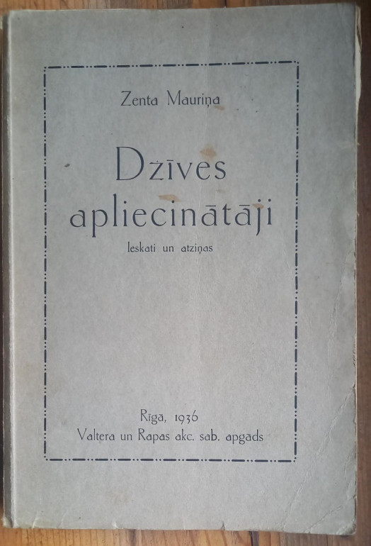 Dzīves apliecinātāji : ieskati un atziņas / Zenta Mauriņa. 2. iesp. Rīga : Valters un Rapa, 1936. gads 180 lpp. ; 20 cm. Vāki apružāti, lapas dzeltējušas. | |