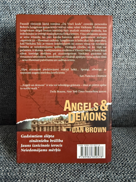 Roberta Lengdona gaitas šoreiz ved uz valsti valstī Vatikānu. Profesoram Lengdonam slēgtā Šveices institūtā lūdz analizēt mistisku simbolu, kas iededzināts uz zvērīgi noslepkavota fiziķa krūtīm. Viņa atklājums saistīts ar senu ienaidu, ko pret katoļu baznīcu auklē gadsimtiem aizliegta organizācija – Illuminati ordenis. Lengdonam ir laiks līdz pusnaktij, lai atrisinātu šo mistēriju. | |