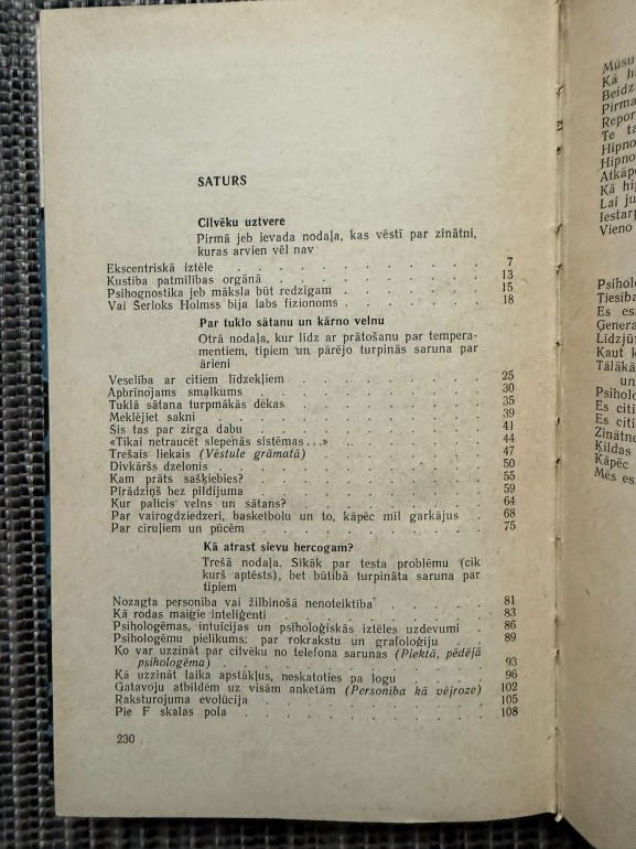 Grāmata “Es un mēs” (Vladimirs Levi, latviski izdota 1972. gadā) ir populārpsiholoģisks darbs, kurā aplūkota fizionomikas vēsture, rakstura tipi, psiholoģiskie testi un savstarpējo attiecību mehānismi. Autors skaidro, kā izprast citu cilvēku iekšējo pasauli, slēptos rīcības motīvus, kā arī runā par iedvesmošanu un hipnozi. | |