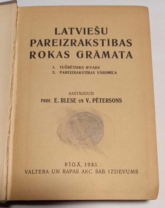 | Valtera un Rapas Akc. sab. izdevums Rīgā, 1933. gads. 460 lpp. | |