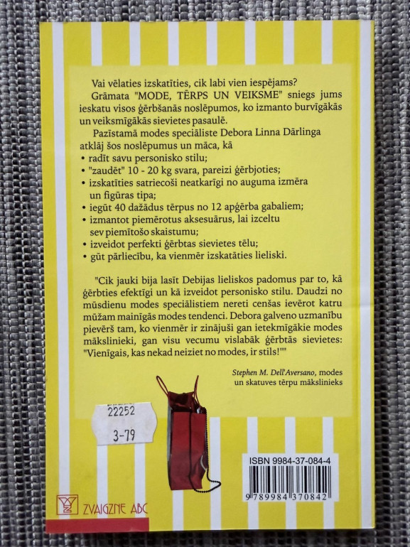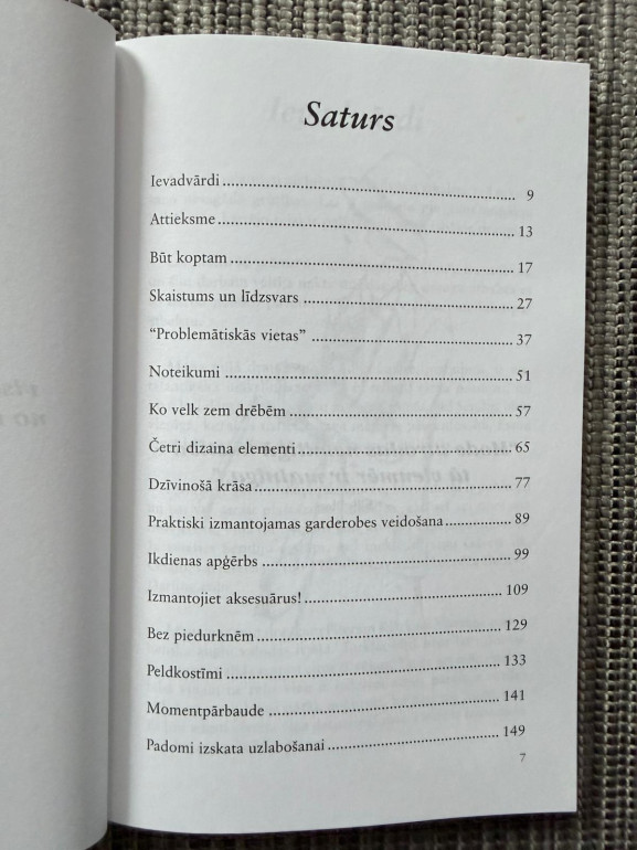 | Grāmata “Mode, tērps un veiksme” ir praktisks stila ceļvedis ar **“modes noslēpumiem, ko eksperti parasti neizpauž”**—par tērpu izvēli, pašizpausmi un to, kā izskats var atbalstīt pašpārliecību ikdienā. | |