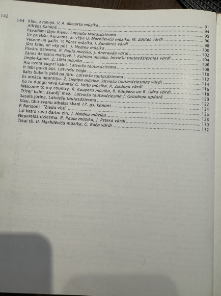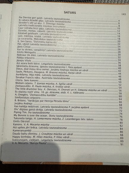 | 130.lpp. pie dziesmas ieraksts, kas ko dzied. Nelieli pleķīši. Vāks nedaudz apbružāts. 144 lpp.,2004.g. | |