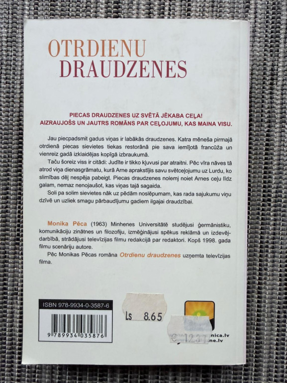 | Otrdienu draudzenes ir latviešu rakstnieces Monikas Pēcas romāns. Grāmata stāsta par sieviešu draudzību, ikdienas attiecībām un dzīves pārmaiņām. Tā ir īpaša ar sirsnīgu, atklātu stāstījumu par emocijām, savstarpēju atbalstu un spēju pieņemt sevi dažādos dzīves posmos. | |