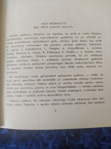 Saturs: Tēraudvējš / Roberts Eidemanis. Piektais cēliens / Andrejs Upīts. Neuzvaramā armāda / Jānis Sudrabkalns. Pēterpils / Roberts Eidemanis. Kapi / Linards Laicens. Ceļi / Alvils Ceplis. Kremlī pie Ļeņina / Aleksandrs Čaks. Pulkvedis Vācietis Perekopā / Jānis Medenis. Slava / Valdis Lukss. Ešeloni brauc naktij cauri / Bruno Saulītis. Demobilizācija / Ojārs Vācietis. Pulkveža Vācieša vēstules / | |
