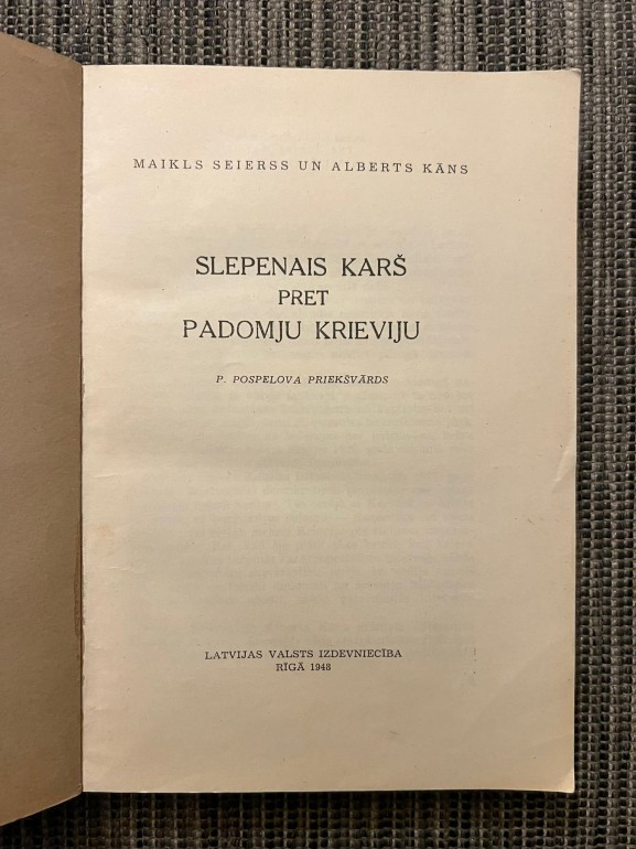 | Grāmata “Slepenais karš pret padomju Krieviju” (M. Seierss, A. Kāns) ir dokumentāls pētījums par Rietumvalstu slepenajām intervencēm un sazvērestībām pret PSRS no 1918. līdz 1945. gadam. Autori balstās uz ASV un Lielbritānijas valdības dokumentiem, tiesas stenogrammām un memuāriem, atklājot “sanitārā kordona” politiku, kontrrevolūciju un ceļu no Minhenes līdz Sanfrancisko. Darbs uzskatāmi parāda, | |