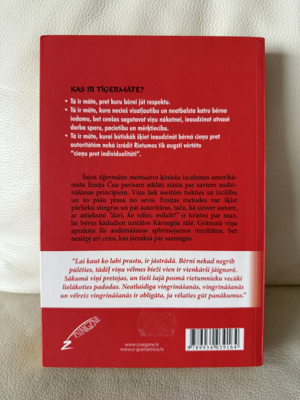 Grāmata stāsta par “ķīniešu māti” - un to, cik cītīgi ķīnieši strādā ar saviem bērniem, lai viņi dzīvē sasniegtu vislabākos rezultātus. Pēc ķīniešu standartiem otrā vieta ir vienkārši traģēdija, bērnam jābūt pirmajam un vislabākajam it visā.sTiesa gan,autore ir precējusies ar amerikāni, līdz ar to viņas meitas aug dažādu kultūru ietekmē un lai gan tiek spiestas neskaitāmas stundas pavadīt mācoties | |