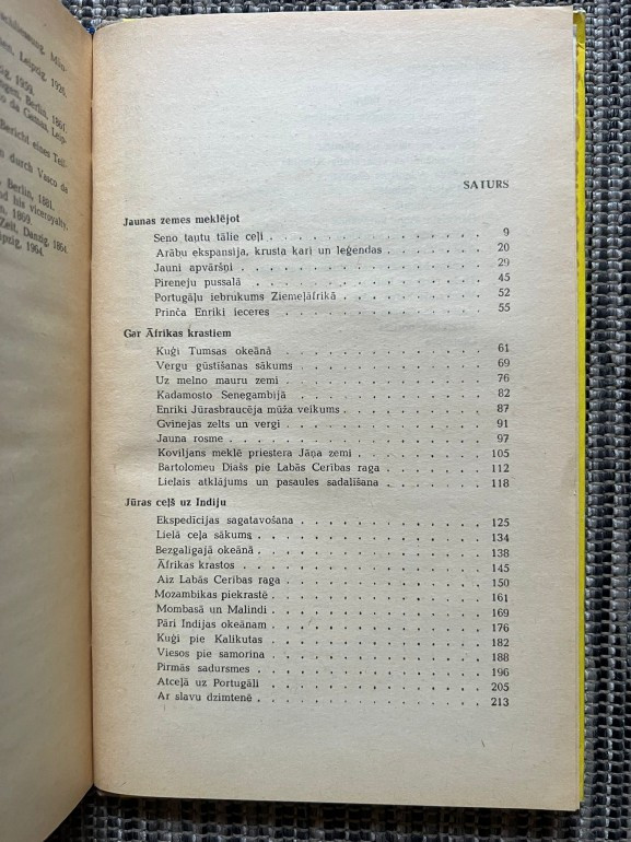 Stāsts par portugāļu jūrasbraucējiem – Vasko da Gamu, Magelānu u.c. – un viņu ceļojumiem uz Āfriku un Indiju. Grāmata par lielajiem ģeogrāfiskajiem atklājumiem. | |